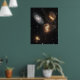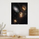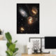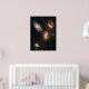 Rekommenderad storlek för att passa en standard ram: 18 x 24 tum (ursprunglig storlek: 20 x 23 tum vid 300 PPI, 23 MP). Många andra storlekar är tillgängliga. Klicka på Anpassa på högerna. En strid mellan medlemmarna i en berömd galaxi quintet avslöjar en mängd stjärnor över ett brett färg-område, från unga, blå stjärnor till äldre, röda stjärnor. Porträtt i Stephan's Quintet, även känd som Hickson Compact Group 92, togs av den nya Wide Fält Camera 3 (WFC3) ombord på NASA:s telescope i Hubble Space. Stephan's Quintet är, som namn antyder, en grupp av fem galaxer. Namn är dock lite av en felbenämning. Studier har visat att gruppmedlemmen NGC 7320, på övre lämnat delen, faktiskt är en förgrundsgalaxi ungefär sju gånger närmare jorden än resten av gruppen. Tre av galaxerna har förvrängt form, avlång spiral arm och lång, gasformig tidal svan som innehåller myriad stjärna, bevis på deras nära möten. Dessa interaktioner har utlöst en grumling av stjärnfödsel i det centrala galaxparet. Detta drama utspelas mot en rik bakgrund av grisgalaxer. Bilden, tagen i synligt och infrarött ljus, visar WFC3:s breda våglängdsområde. I färg kan man se hur gamla stellarpopulationerna är, vilket visar att stjärnornas födsel inträffade vid olika epoker och sträckte sig över hundratals miljoner år. Kamerans infraröda synfält går också igenom dammgardiner för att se stjärngrupperingar som inte kan ses i synligt ljus. NGC 7319, överst på högerna, är ett barrött spiral med distinkt arm i spiral som följer nästan 180 grader tillbaka till pub. De blå glasögonen i spiral arm överst på 7319 NGC och de röda prickarna precis ovanför och till högerna av kärnan är kluster av många tusen stjärnor. Det mesta av quintet är för långt borta, till och med för att Hubble ska kunna lösa enskilda stjärnor. Om man fortsätter medsols verkar nästa galaxi ha två kärnor, men det är i själva verket två galaxer, NGC 7318A och NGC 7318B. Inringningen av galaxerna är unga, ljusa, blå stjärnkluster och rosa moln av glödande väte där små stjärnor föds. Dessa stjärnor är mindre än 10 miljoner år gamla och har ännu inte blåst bort sitt naturliga moln. Långt bort från galaxerna vid högerna är ett intergalaktiskt plåster där många stjärnkluster bildas. NGC 7317, lämnat i grund, är en normal, tittar elliptisk galaxi som påverkas mindre av interaktionerna. En skarp kontrast till dessa galaxer är dvärggalaxen NGC 7320 vid övre lämnat delen. Uppblåsningar av stjärnbildning förekommer i galaxyns skiva, vilket framgår av blått och rosa punkter. I denna galaxi kan Hubble lösa enskilda stjärnor, bevis på att NGC 7320 ligger närmare jorden. 7320 är 40 miljoner ljusår från jorden. De andra medlemmarna i kvintetgruppen bor 290 miljoner ljusår bort i konstellationen Pegasus. Dessa längre medlemmar är klart rödare än förgrundsgalaxen, vilket tyder på att äldre stjärnor finns i deras kärnor. Stjärnornas ljus kan också redas ut ytterligare genom damm som rörs upp i påträffarna. Stephan är den första kompaktgruppen som någonsin upptäckts. WFC3 observerade kvintetten i juli och augusti 2009. Den sammansatta bilden gjordes med hjälp av filter som isolerar ljus från spektrumets blåa, grönt och infraröda delar, samt med utsläpp från joniserat väte. Dessa Hubble-observationer ingår i Hubble Servicing Uppdrag 4 Tidigt Release Observations. NASA-astronauter installerade kameran under en service uppdrag i maj för att uppgradera och reparera det 19-åriga Hubble-teleskopet. Kredit: NASA, ESA och Hubble SM4 ERO Team