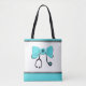Stethoscope Bow Teal & White Tote Bag Detta feminina stetoskop och buskdesign är perfektens gåva till vilken hälsohjälte som helst i ditt liv. Sältvit med svarta accenter och personlig med en inledande påse, och den här väskan är tillräckligt rumslig för att rymma alla förnödenheter som en upptagen professionell av hälso- och sjukvården kan behöva. Sjuksköterskeskola student, doktor, sjuksköterska, EMT, sjukvårdare, medicinska student, sjuksköterska, hemvårdspersonal, sjuksköterska eller någon annan i medicinska fält.