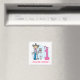 Första födelsedag söt land western/cowboyen/rodeokettejpstuva i jeans och rosa bandana med häst och katt, stor rosa nummer 1.