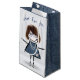 Cute stick-flicka figur med hylsor, hår, blå glasögon, denim-klänning och pärlhalsband. Text kan redigeras.