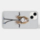 Stick figur-flicka med glasögon, hår och blå sensorer på en vit och grått-polka punkt mönster. Bakgrunden kan ändras.