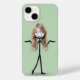 Håll en flicka med glasögon och bobbat hår på gröntens bakgrund. Bakgrunden till färg kan ändras.