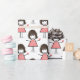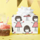 Ett sött stick figur med 3D-hår bär en röd och vit gingham-klänning, senor och pärlor och håller ett rött hjärta på en vit bakgrund. Bakgrunden till färg kan ändras.