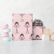 Cute stick figur flicka med hår, ögonglasögon och blå sensorer på rosans bakgrund. Bakgrunden till färg kan ändras.