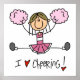 En munkavle i stick figur i en rosa uniform med rosa pom och text som lyder I Kärlek Cheering på cheerledande T-shirts, hoodies, keepsakes mugg, tote bags, iPad och iphone case, doodle högtalare och mycket annat.