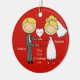 Vår första julprydnad presenterar en gullig stick figurbrud, & brudgummen kopplar ihop uppsättningen på en röd bakgrund! Personifiera med din information och datera, och du är all uppsättning som går! Den underbara daterade minnessakgåvan för din första jul och ett underbart tillägg till dig jul smyckar samlingen.