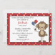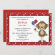 Starta din party från högerna med vår söta födelsedagsinbjudan med söta apor som håller en röd och blå ballong. Inbjudan innehåller en ljusröd gräns med blå och vit polka dots. Perfekt för en flickfödelsedag eller pojkar. Anpassa med din information så är du redo att gå! Matchande artiklar, inklusive frimärke för födelsedagskalv, favoritklistermärken, tackkort och tack för att du har klistermärken också i vår butik.