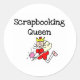 En berömvärd stick figur-drottning i en röd klänning bär ett krona och texten lyder "Skrapboksdrottning" på skrapbojkottar, mugg, tote bags och mer för den seriösa skrotbokern som har gjort det ett tag!