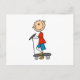 Stick figurpojke på sparkcykeln vykort