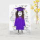 Cute stick-flicka med långa mörkar, studenten-diplom, lila, senor och hylsa för student grattisar.
