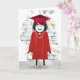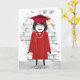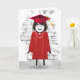 Cute stick-flicka med hår, studenten-diploma, rödgås, pärlhalsband, senor och lock för student-grattisar.