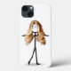 Håll tjejen med glasögon och långa, blond hår på vit bakgrund. Bakgrunden till färg kan ändras.