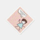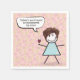 Cute stick figur-flicka med rött vin i glas, hår, pärlhalsband, citat på rosa blommigt bakgrund. Text kan redigeras.