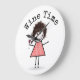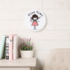 Cute stick-flicka med hår, gingham-klänning, smygare och rött vin i stamglas på vit bakgrund. Den vita bakgrunden färg kan ändras. Text kan redigeras eller tas bort.