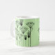 I mugg har vi en modern utformning av växter som är tillverkade av linjer, cirklar, trianglar, rektanglar och svarta fyrkanter i grönt.