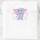 Detta runda klistermärke visas i vitt med en söt elefant och rosa blommor tryckt. Anpassa det här objektet eller köp som det är.
