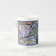 Den abstrakta designen på Bone China Mugg är i själva verket ett originalfoto av ZoeSPEAK från ett gammalt pickupt lastbil som hittade ett vilande ställe mellan träd på en tyst gata i Nyckel Väster i Florida. Där förvandlades det till ett konstverk, som var täckt av alla slags färgstarka klistermärken, ljusblå, och med mycket text. Det finns en pirat-skalle, segelbåtar och nummer 13. Det finns till och med ett CONCHTASTIC-klistermärke av buyen vid den sydligaste punkten på kontinenten..