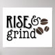 Vår söta och roliga typografikonskrift gör ett underbart tillägg till ditt kök eller kaffe! Konstruktionen har "Stiga upp och Grind" i trendigets svarta typografi med tre illustrationer av kaffebönor i en espressobrunt vattenfärgeffekt.