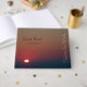 Fyll i din samling i bröllop med en snyggt anpassad gäst bok som har en mörk och en vacker soluppgång som matchar samlingen i Sol Bröllop.