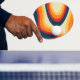 Den geometriska illustrationen av abstrakt i vinkara mönster med röd, orange, gult och beige strimlad vinkar dekoration i stil bakgrund.