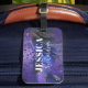 Gör ett strålande första intryck på bagagebandet med denna Stylish Trendy Abstrakt Lila Glitter Marmor Fluid Art Bagagelapp.