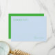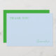 Säg 'Tack' med stil! Praktiskt för hemmakontoret, ha dem till hands när du behöver visa din uppskattning. Kortet är pudrat blått och har grön personlig anpassning. Baksidan är i djärkt grönt för att skapa en stilfull kontrast. Anpassa med valfri text genom att uppdatera den användarvänliga mallen.