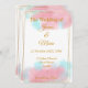 Stilfull rosa, akvarellblå bröllopsinbjudan. namn, tider, datum och plats helt anpassningsbara efter dina behov