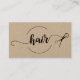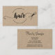 Mallen för designen för skönhethårstylisten avbildar den naturliga med grafisk typografi för stilfullt hår och sax. En organiserad frisörvisitkort som framläggas på det naturliga lagrar för hantverkstilpapper för en skönhetsalong, oberoende skönhetbranschprofessionell.