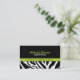 Kalka gröna och svart stilfulla visitkortar för någon typ av affären. Att presentera ett svartvitt sebrarandmönster med shock rosa betonar.