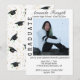 Meddela dina vänner och familj om din examen med denna snygga inbjudan till examensfest. Den har en mall för att lägga till ett foto av din examen på framsidan och du anpassar den med deras namn, skolans namn och examensår högst upp. Nedanför fotot anpassar du den med all din festinformation med den lättanvända mallen. Baksidan har ett mönster av spridda examenshattar och guldglitter överallt för en rolig feststämning.