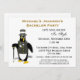 Ta bort det extra apostrofen när du skriver förnamnet, hoppsan. När stil och elegans väger tyngre än tillfället är denna tecknade pingvin redo i sin fashionabla smokingväst och fluga, svarta cylinderhatt, med käpp och monokel. Låt dina gäster veta att denna fest för brudgummen är en mer formell tillställning än en kalas, och att kostym eller smoking är lämplig klädsel för kvällen. Observera - det ska inte finnas någon apostrof i förnamnet - justera det i din text. Fyll bara i din personliga information efter behov. Det finns en extra rad för eventuell fest- och/eller modeinformation som kan vara till hjälp, eller ta bort den raden om den inte behövs. Observera: ett annat förslag till formulering, Let's Send Him Off in Style, skulle kunna vara Let's Celebrate In Style, skriven på samma delade rader, om det passar tillfället bättre. Använd den fyrkant