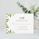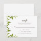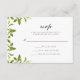 Dessa eleganta bröllop RSVP-kort har en delikat grön design med botaniska blad på en mjuk vit bakgrund.