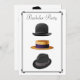 Denna fashionabla inbjudan sätter tonen och indikerar att det är en stilig kväll i stan istället för en vanlig ölfest. Mycket manlig, mycket stilfull. Inbjudan visar en elegant svart bowlare, svart trilby-fedora med grått band och en stråhatt med svart band med en enkel svart art déco-kant. På baksidan finns ytterligare en fedora med ett vitt band. Fyll bara i med din festinformation och gör ändringar vid behov. -- Se rabatter för bulkinköp. Kuvert medföljer.