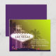 Vacker illustration av Las Vegas-skylten, silhuetter av palmer och glittrande stjärnor designade på anpassade bröllakstackkort. ((Du kan hitta matchande bröllapsdetaljer och presenter i denna butik, Bridal Heaven. Kontakta ujean4791@gmail.com för anpassat arbete och/eller samordnande bröllapspapper.))