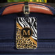 Resa i stil med denna märkre för bagage för monogramen för den leopardtrycket och zebra tryck beställnings-. En coola och en roligt långt som dekorerar och som identifierar ditt bagage. Visa din personlighet med denna roligt- och trendigbagagemärkre. Skräddarsy med din personliga information. Klicka "skräddarsy den!", knäppas för att ändra textformatet, textfärgen, stilsortsstilen och mer!