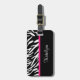 Denna stilfulla personligbagagemärkre presenterar en svartvit zebra tryck och en rosa brytninggräns på bekläda på bagagemärkren. En svartvit zebra tryck och en svartvit brytningram presenteras upplysningsvis på baksidaen av bagagemärkren. Stå ut med denna trendig och unika märkre för sebrarandbagage. Skräddarsy med din personliga eller om affären information. Välj "skräddarsy den" knäppas för att ändra textformatet, textfärgen, stilsortsstilen och mer!