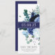 Denna eleganta mjuka blå och grå design har ett indigo-band liknande band, gumblad, hortensior, peonior och tistel i en bukett. Det är en semi-formell, lättredigerbar design som är fräsch, livfull och modern, men också lämplig för ett mer rustikt bröllop eller tillfälle.
