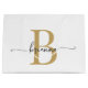 Tjejaktig Stilren Modern Elegant Vit och Guld Monogram Initial Namn Skript Anpassad Personlig Presentpåse. Denna design har ett förnamn i ett vackert handskrivet svansfont kalligrafi (eller typografi) med monogram initial i guld och svart på vit bakgrund. Lätt att anpassa den. Denna feminina presentpåse är bra för husvärmegåva, också för födelsedag, bröllop, mors dag, sweet 16 födelsedagsfest, baby shower, bröllops shower, för examensfestpresent och den är för tjejen som älskar trendiga unika saker.