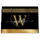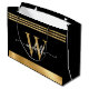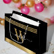 Tjejaktig Stilren Modern Elegant Svart och Guld Monogram Initial Namn Script Anpassad Personlig Presentpåse. Denna design har ett förnamn i en snygg handskriven svansfont med kalligrafi (eller typografi) med monograminitial i guld och vitt med svart guldrandig kant. Lätt att anpassa den. Denna feminina presentpåse är bra för husvärmegåva, också för födelsedag, bröllop, mors dag, sweet 16 födelsedagsfest, bröllopsfest, baby shower, för examensfestgåva och den är för tjejen som älskar trendiga unika saker.