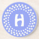 Den stilfulla monogramstenen underlägg, med en prickig vitdesign, på en blåttbakgrund. Avlägga examen pricker bildar cirklar runt om det mellersta monogramtextområdet. Personifiera med brev av ditt primat. Det underbara underlägg för något rum av huset och en skulle uppsättning gör en älskvärd gåva för något tillfälle.
