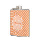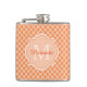 Tillfoga en sofistikerad modern vibe till din personliga stil med detta moderiktiga orange- och vitquatrefoilmönster 6 uns. flaska med en elegant inramad monogram. Personifiera denna stilfulla design, genom att tillfoga ditt namn, och monogrammed märka med sina initialer.