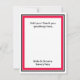 Stilrent platt tackkort gjort i vitt, med seriefigurer av två champagneglas, med hjärtan som svävar upp mellan dem. Svart text under glasen läser helt enkelt Tack. Baksidan av kortet har en röd och svart ram runt ett vitt textområde och svart text som är redo att anpassas med din hälsning. Ett bra alternativ till det traditionella tältformatet för ett bröllop tackkort.