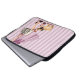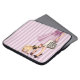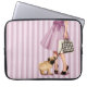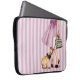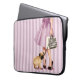 Stilfull dam med eleganta shopping bag som går den gulliga mopsvalpen på purpurfärgad stripy bakgrund. Målat av konstnären Maryline Cazenave.