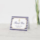 Anpassa detta stilrena moderna nautiska bröllpsdusch tackkort. Randig vit och blå horisontell design med falska guldelement och ankare, inställd som en mall för enkel anpassning. Matchande bröllopsinbjudan, svarskort, programkort, gästinformation riktning kort, repetition middagsinbjudan och tacktaggkort finns i en stilfull nautisk brölloppssamling.
