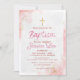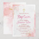 Ett stilrent marmorerat rosa dop inbjudningskort för dotter. Denna mall är anpassningsbar. För ytterligare anpassning, gå till "Anpassa ytterligare"