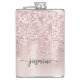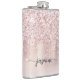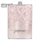 Girly Glam Blush Rosa Guld Glitter Metallisk Monogram Namn Script Anpassad Personlig Flask. Dessa mönster har ditt förnamn i en snygg handstilsstil med svansar typsnitts typografi på rosa rosa guld falsk metallisk folie med glam glitter glitter-kant. Dessa är lätta att anpassa. Snygg stilren feminin sällskapspresent, husvärmegåva, även för möhippa, födelsedag, mors dag, bröllop, 16-årsfest, brud shower-fest, för studentfest och det är för tjejen som älskar unika glittrande stiliga saker.