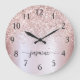 Girly Glam Rouge Rose Guld Glitter Metallisk Monogram Namn Script Anpassad Personlig Stor Klocka. Dessa mönster har ditt förnamn i en söt handskriven stilsvans font signatur typografi på rosa rose guld falsk metallisk folie med glam glitter glitterkant. Dessa är lätta att anpassa. Stor stilren feminin husvärmningspresent, även för födelsedag, mors dag, bröllop, bröllopsfest, sweet 16 födelsedagsfest och baby shower, examen och Det är för tjejen som älskar unika glitter stiliga saker.