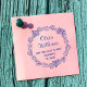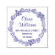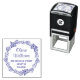 Vacker självbläckande rund returadressstämpel med namn i kursiv stil och enkel tryckt adress. Dekorerad med en prydnadsblomma.