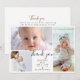 Skapa din egen vackra ny bebis-annonsering/babyshower tack-fotocollage-kort för att tacka vänner och familj för att de välkomnade din lilla en! Den eleganta och minimalistiska designen har en collage av tre personliga foton och stilfull typografi. På baksidan finns ett anpassningsbart meddelande. Gör det unikt genom att ersätta texten och bilderna genom att klicka på "Personifiera"-knappen.