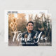 Tackkort examen, det kan vara ett gratulationskort eller lyckönskningskort. Denna design har ett anpassat foto av examen och vit textskrift. Ändra gärna bilden med ditt eget foto och tackmeddelande på baksidan.